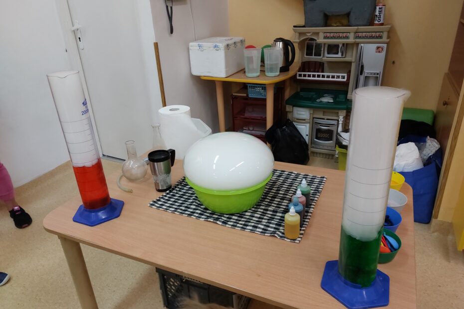 Jeżyki z dużym zainteresowaniem i zaangażowaniem  uczestniczyły w warsztatach ,,Mały naukowiec”, podczas których mogły zabserwować eksperymenty z suchym lodem oraz wyjątkowo trwałymi bańkami mydlanymi.