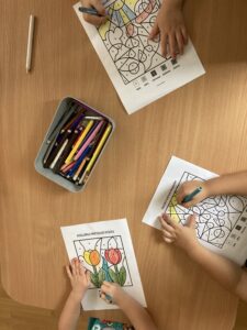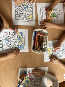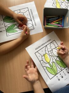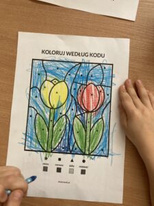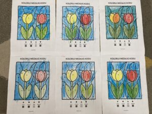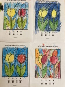 Kodowanie w przedszkolu ma na celu naukę logicznego myślenia, rozwijanie percepcji wzrokowej. Doskonali umiejętność skupienia uwagi, koncentracji, cierpliwości. Wilczki poradziły sobie z zadaniem doskonale.