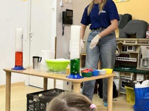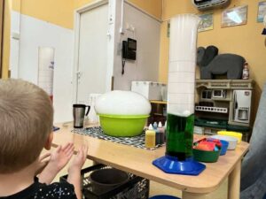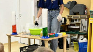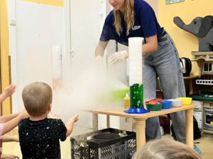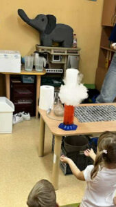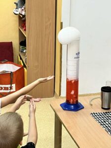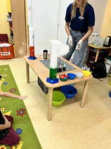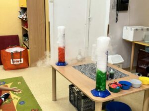Najbardziej podobało nam się, kiedy Pani zrobiła „wulkan” – z butelki wylewała się piana i razem z nią wydobywała się mgła. Wyglądało to jak prawdziwa erupcja!
