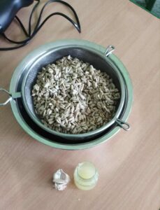 W piątek zrobiliśmy twarożek ze słonecznika. Tak, wiemy, że prawdziwy twarożek robi się z sera białego. Ale my zrobiliśmy równie pyszny i zdrowy. Namoczone wcześniej ziarna słonecznika zblendowaliśmy z sokiem z cytryny i czosnkiem. Do tego szczypta soli i … gotowe. Mamy nadzieję, że udało się wszystkim spróbować naszego specjału. Jeśli nie, możemy razem zrobić w domu 🙂