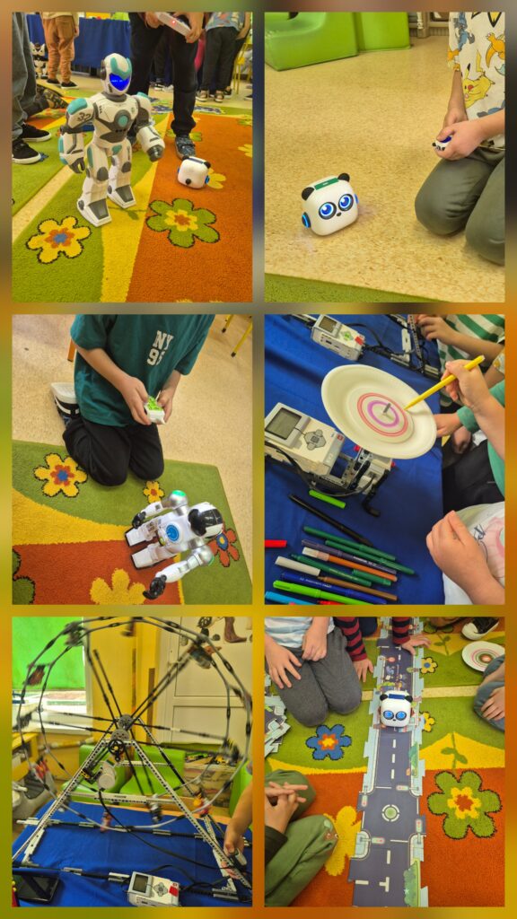 Dowiedzieliśmy się, czym są roboty, jakie są ich rodzaje i gdzie możemy je spotkać/zobaczyć. Mieliśmy również możliwość – pod czujnym okiem pani prowadzącej – samodzielnego przetestowania robotów, sterowania nimi lub zaprogramowania, aby chodziły tam, gdzie chcemy.